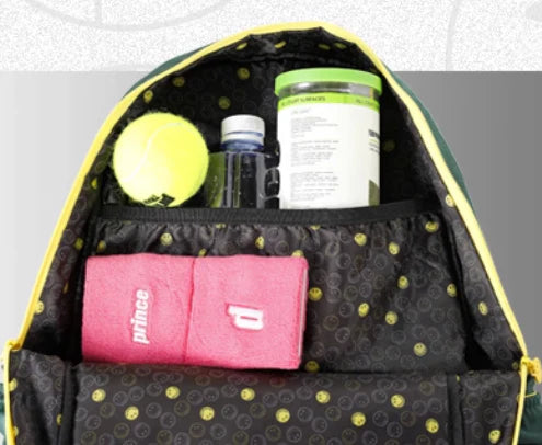 BACKPACK PRINCE X SMILEY GR 專為追求實用與舒適的運動愛好者設計,展示了出色的功能性與時尚感。內部空間布局經過精心設計,使得各類物品能夠有序放置,方便快速取用,確保訓練和比賽時的高效性。安心儲存設計為用戶提供了額外的安全感,確保重要物品在運動過程中不易遺失或受損。